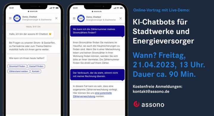 Am 21. April um 13 Uhr haben wir einen Online-Austausch zum Thema „Nutzen von KI-Chatbots für Stadtwerke und Energieversorger“ geplant. In dem kostenlosen Zoom-Meeting sprechen unsere Chatbot-Experten mit Ihnen über die Vorteile eines KI-Chatbots für Stadtwerke und Energieversorger, teilen Erfahrungswerte aus der Praxis und zeigen Ihnen eine Live-Demo. „Wie setzen sich die Energiepreise zusammen? Wie oft wird der Zähler abgelesen? Wie kann ich Strom sparen?“ Viele Fragen, die Kunden an ein Stadtwerk oder einen Energieversorger haben, treten immer wieder aufsWeiterlesen