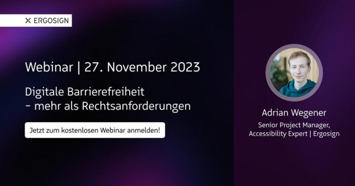 Möchten Sie die digitale Barrierefreiheit Ihrer Produkte und Dienstleistungen verbessern und dabei neue Zielgruppen erreichen?In unserem interaktiven Webinar werden wir die Bedeutung von digitaler Barrierefreiheit über die reinen Rechtsanforderungen hinaus beleuchten.Adrian Wegener zeigt Ihnen, wie Accessibility als Business Case und UX-Grundlage genutzt werden kann. Erfahren Sie, wie digitale Barrierefreiheit neue Zielgruppen erschließt und das Marktpotenzial erweitert. Ziel ist es, Ihnen die Chancen und Möglichkeiten digitaler Barrierefreiheit aufzuzeigen und Ihr Unternehmen für die Zukunft zu rüsten. Vermeiden Sie kostspielige Nachbesserungen undWeiterlesen