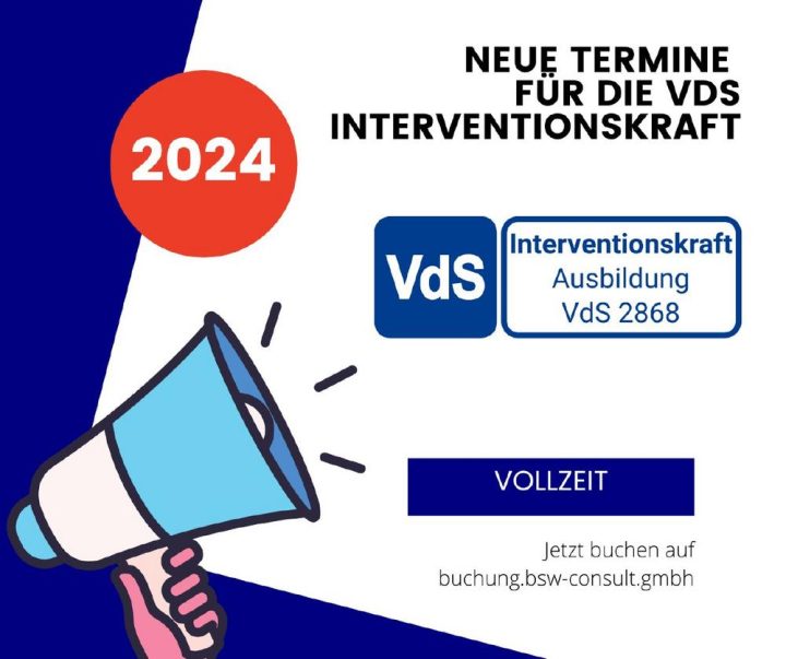 Gemäß der VDS-Richtlinie VDS 2172 müssen Interventionskräfte einen Lehrgang absolvieren, der aus 32 Unterrichtseinheiten besteht, gefolgt von einer abschließenden Wissensfeststellung.Die Bescheinigung über den erfolgreichen Abschluss der Wissensfeststellung dient als Nachweis gegenüber– der VdS Schadenverhütung GmbH– Auftraggebern sowie– den Erfordernissen der DIN 77200-2022. Dies bestätigt, dass die erforderliche Qualifikation für Interventionskräfte im Sinne der VdS-Anerkennung von Wach- und Sicherheitsunternehmen erbracht wurde.Die Seminardauer liegt seit diesem Jahr verpflichtend bei 24 Zeitstunden – somit 32 Unterrichtseinheiten á 45 Minuten zuzüglich der Wissensfeststellung. Preis:Weiterlesen