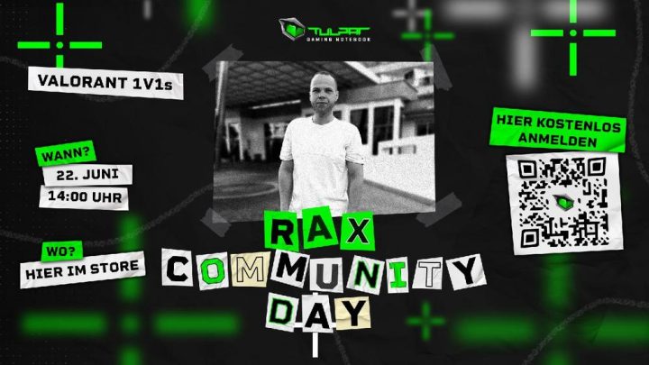 Einer von Deutschlands bekanntesten Valorant Spielern & Streamern kommt für sein erstes Meet & Greet nach Berlin.  Online begeister rAx seine mehr als 185.000 Follower auf Twitch täglich mit starken Gameplay und informativen Moderationen. Er ist nicht nur einer der besten 500 Spieler in Europa, sondern auch ein Profi in der Analyse von E-Sport-Matches.  Sein erstes Community Treffen findet im Erlebniss-Store seines neuen Partners Tulpar Gaming Notebook statt.Wann: 22 Juni, 14:00 UhrWo: Alexanderplatz2, Berlin Neben einem Meet & Greet gibt esWeiterlesen