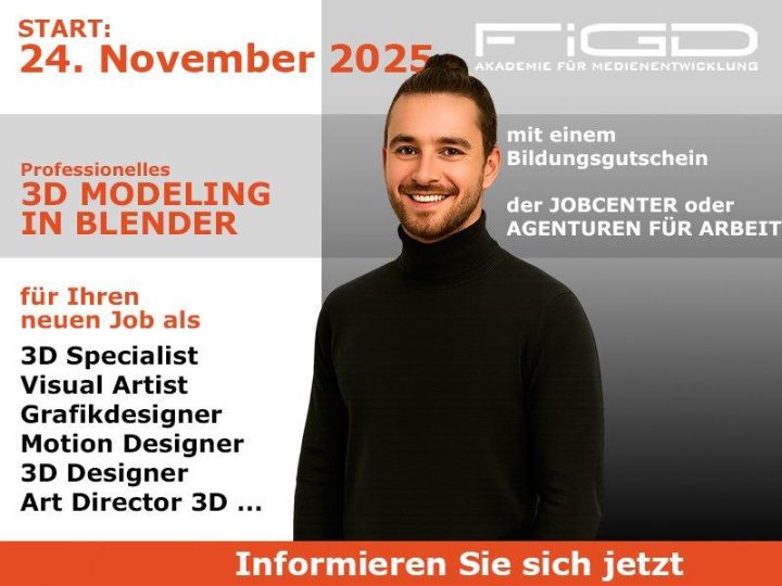 Die digitale Arbeitswelt eröffnet heute mehr denn je kreative Berufsperspektiven – insbesondere für Fachkräfte im Bereich 3D Modeling und Motion Design. Mit der Weiterbildung „3D Modeling / Motion Design“ der FiGD Akademie bereiten Sie sich optimal auf gefragte Berufsfelder wie Visual Artist, 3D Specialist oder Motion Designer vor. Der Kurs findet vollständig online in Live-Unterricht statt, betreut durch erfahrene Fachdozenten – praxisnah, intensiv und arbeitsmarktorientiert. Die Fortbildung startet am 24. November 2025 und dauert rund drei Monate in Vollzeit. DankWeiterlesen