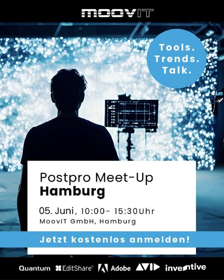 Moin Hamburg, moin Postproduktion! Gemeinsam mit VCT, die seit Januar unser MoovIT-Team verstärken, laden wir euch auch dieses Jahr wieder zu einem Postpro-MeetUp in Hamburg ein. Wir sprechen über die aktuellen Herausforderungen in der Postproduktion und vor allem über die passenden Lösungen dazu. Kommt vorbei und informiert euch über: Remote- & Hybrid-Workflows, die wirklich funktionieren Archivierungs- & Speicherlösungen, die mit eurem Bedarf wachsen Maßgeschneiderte Software & Hardware, die euch den Alltag erleichtert Transcoding-Prozesse ohne Zeitverlust Unsere eigenen Experten als auchWeiterlesen