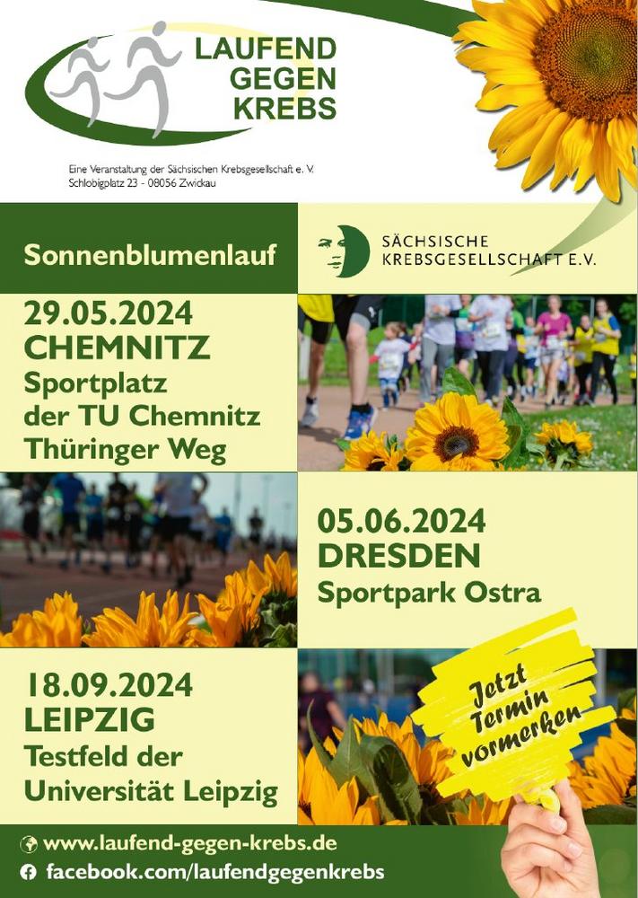 „Laufend gegen Krebs“ ist eine Benefizveranstaltung auf dem Gelände der Universität in Leipzig, auf dem Sportplatz der TU in Chemnitz und in Dresden im Sportpark Ostra. Auf dieser bundesweit einzigartigen Veranstaltung werden sich ehrenamtliche Helfer, Benefizmannschaften und Spender zusammenschließen und ihre Solidarität mit Betroffenen und ihren Angehörigen bekunden. Die Veranstaltung gliedert sich verschiedene Arten von Läufen. Gelaufen wird jeweils maximal eine Stunde bzw. solange es die individuelle Fitness erlaubt. Was zählt ist die Anzahl der gelaufenen Runden bzw. Meter. FürWeiterlesen
