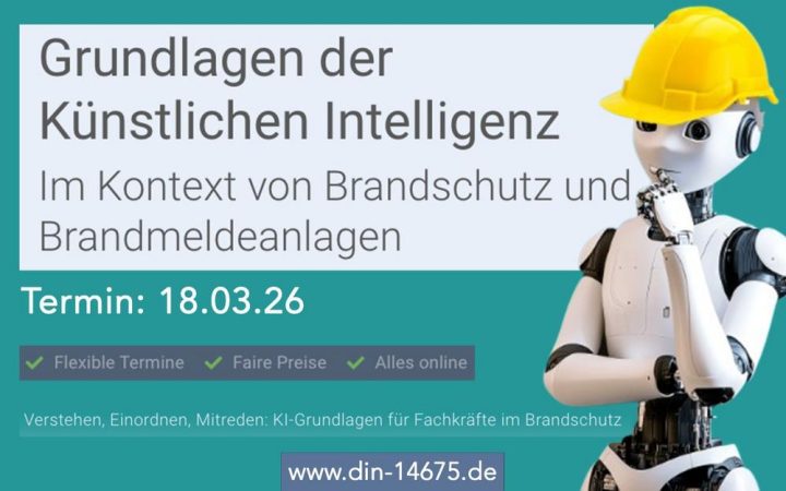 Grundlagen der Künstlichen IntelligenzIm Kontext von Brandschutz und Brandmeldeanlagen: Die Digitalisierung verändert auch den Brandschutz. Künstliche Intelligenz (KI) ist längst kein Zukunftsthema mehr, sondern bereits heute Bestandteil technischer Entwicklungen, auch im Bereich von Brandmeldeanlagen. Dieses Online-Seminar richtet sich an Fachkräfte im vorbeugenden Brandschutz, Betreiber, Errichter, Sachverständige und Planer, die die grundlegenden Funktionsweisen, Begriffe und Chancen der Künstlichen Intelligenz im Kontext von Brandschutz und Brandmeldetechnik verstehen möchten. Inhalt des Seminars: ✔️ Was ist Künstliche Intelligenz (KI)? Einführung in grundlegende Begriffe, Funktionsweisen und Unterscheidung von klassischen IT-SystemenWeiterlesen