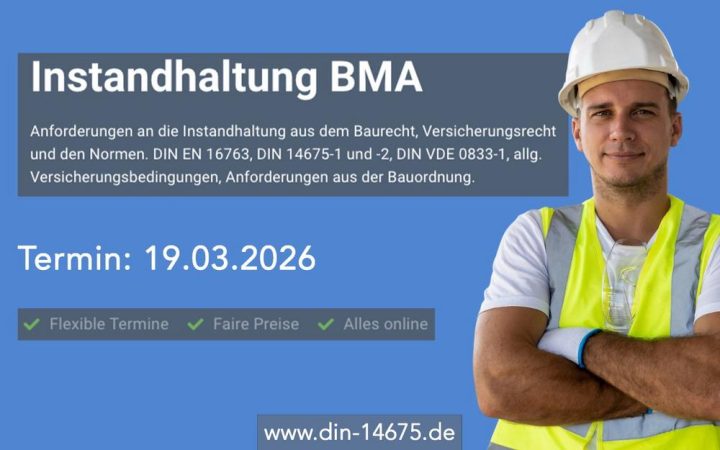 Anforderungen an die Instandhaltung aus dem Baurecht, Versicherungsrecht und den Normen. DIN EN 16763, DIN 14675-1 und -2, DIN VDE 0833-1, allg. Versicherungsbedingungen, Anforderungen aus der Bauordnung.   Schützen Sie Leben und Werte durch fachgerechte Instandhaltung von BMA Eine fehlerhafte oder unzureichend gewartete Brandmeldeanlage kann im Ernstfall katastrophale Folgen haben: Sachwerte und im schlimmsten Fall Personenschäden können entstehen, was wiederum fatale Konsequenzen für Ihr Unternehmen nach sich ziehen kann. Zielsetzung Hier werden Ihnen die grundsätzlichen Anforderungen an die Instandhaltung nachWeiterlesen