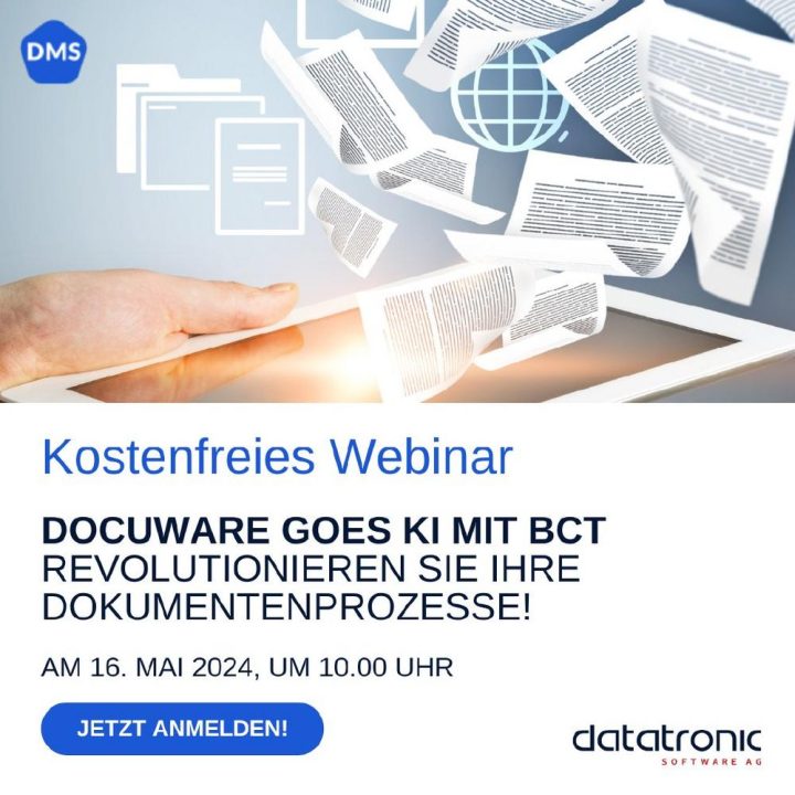 Möchten Sie wissen, wie Sie Ihre DocuWare-Lösung optimal mit den gängigen Microsoft 365 Office Anwendungen verknüpfen können? Nehmen Sie an unserem kostenfreien Webinar teil und erfahren Sie, wie Sie noch effizienter arbeiten und wertvolle Zeit sparen können! Webinar-Agenda: ? Vertragsversionierung leicht gemacht:Lernen Sie, wie Sie Verträge effizient mit Microsoft Word und DocuWare versionieren, um stets den Überblick zu behalten. ? Schnelles Ablegen von Excel-Kalkulationen:Der DocuWare Printer ermöglicht die nahtlose Integration in Excel und hilft Ihnen, Ihre Kalkulationen schnell und einfachWeiterlesen