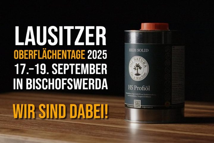 Lausitzer Oberflächentage 2025: OLI-NATURA mit HS Profiöl in Bischofswerda Die Lausitzer Oberflächentage 2025 vom 17.–19. September in Bischofswerda sind der Treffpunkt für Parkett- und Bodenprofis. Ab dem 18. September heißt es: Bühne frei für die Aussteller. Am Stand von OLI-NATURA begrüßt Sie Thomas Trommer und präsentiert live das HS Profiöl – die Profi-Lösung für natürlich matte, robuste und pflegeleichte Parkett- und Holzböden. Ob HS Profiöl NATUR mit kräftiger Anfeuerung oder HS Profiöl FARBE: Das Öl überzeugt durch lange Offenzeit, ansatzfreieWeiterlesen