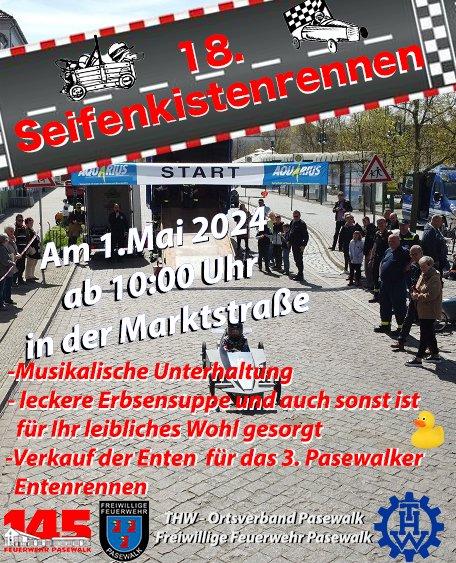 18. Seifenkistenrennen Am 01.Mai 2024 ab 10.00 Uhr in der Marktstraße  Musikalische Unterhaltung  leckere Erbsensuppe und auch sonst ist für Ihr leibliches Wohl gesorgt Verkauf der Enten für das 3. Pasewalker Entenrennen Eventdatum: Mittwoch, 01. Mai 2024 10:00 – 15:00 Eventort: Pasewalk Firmenkontakt und Herausgeber der Eventbeschreibung: Stadt PasewalkAm Markt 1217309 PasewalkTelefon: +49 (3973) 2510Telefax: +49 (3973) 251287http://www.pasewalk.de Weiterführende Links Zum Event Originalinserat von Stadt Pasewalk Alle Events von Stadt Pasewalk Für das oben stehende Event ist allein der jeweilsWeiterlesen