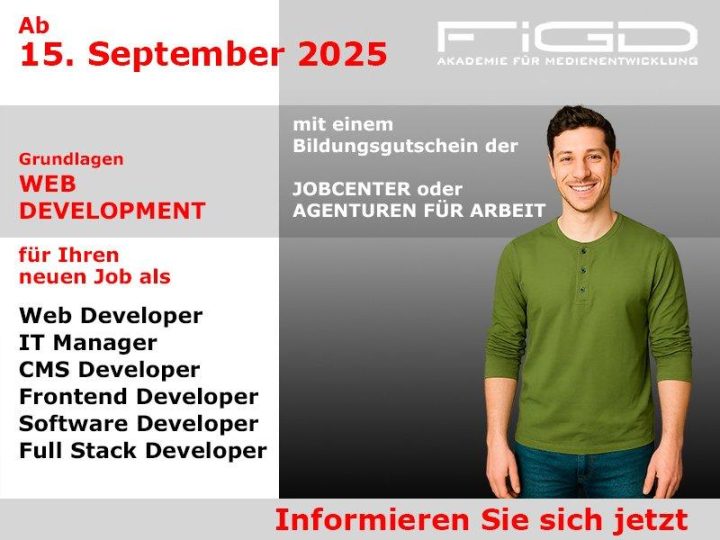 Die Digitalisierung verändert nahezu alle Branchen – und mit ihr wächst der Bedarf an qualifizierten Fachkräften im Bereich Webentwicklung. Ob im E-Commerce, in der Unternehmenskommunikation oder im Bildungswesen – ohne webbasierte Anwendungen geht nichts mehr. Die Weiterbildung „Web Development“ der FiGD Akademie GmbH bereitet Sie gezielt auf eine Tätigkeit im digitalen Berufsumfeld vor. Ab dem 25. August 2025 erlernen Sie in nur drei Monaten die Grundlagen moderner Internetprogrammierung – mit einem hohen Praxisanteil und in strukturierter Vollzeit. Der Kurs istWeiterlesen