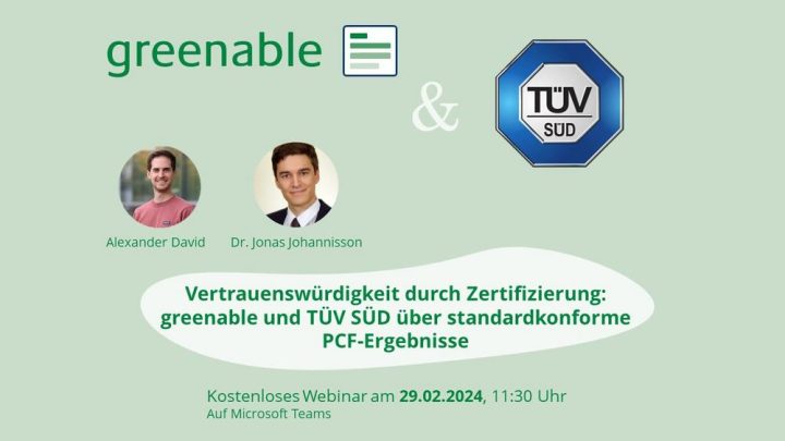 Vertrauenswürdigkeit durch Verifizierung: greenable und TÜV SÜD über standardkonforme PCF-Ergebnisse (Webinar | Online)