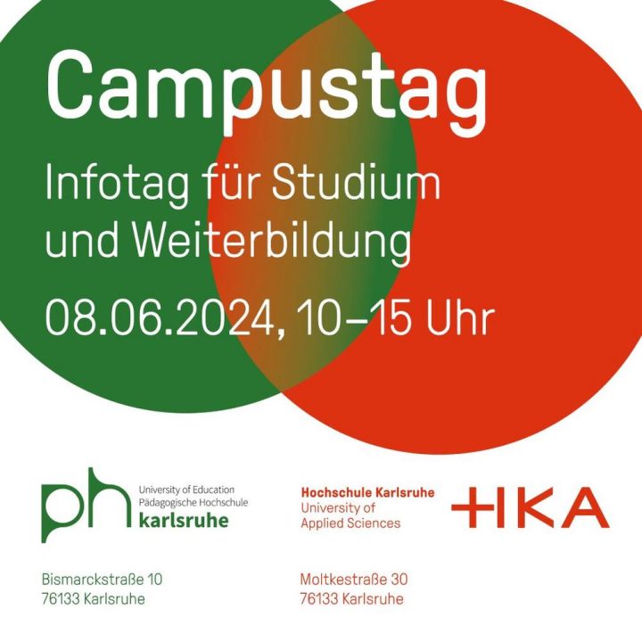 Ein Campusareal, zwei Hochschulen, ein Tag der offenen Türen! Am Samstag, 8. Juni 2024, von 10 bis 15 Uhr bieten die Pädagogische Hochschule Karlsruhe (PHKA) sowie die Hochschule Karlsruhe (Die HKA) die Möglichkeit auf dem gemeinsamen Areal links und rechts der Moltkestraße Hochschulluft zu schnuppern. Die Hochschule Karlsruhe (HKA) In einer zentralen Einführungsveranstaltung um 10 Uhr stellt Prorektor Prof. Dr. Rainer Neumann die Hochschule vor. Anschließend informieren die sechs Fakultäten in Einzelvorträgen über ihre Studiengänge in Ingenieurwissenschaften, Informatik, Wirtschaftswissenschaften und Medien.Weiterlesen